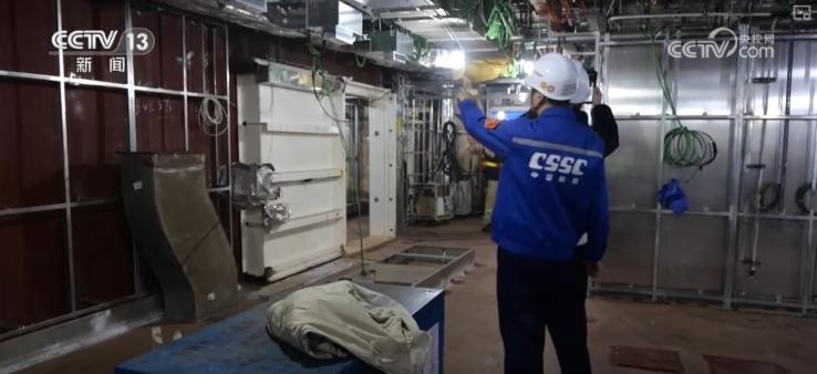 按计划,接下来第二艘国产大型邮轮将在船坞开始内装工作。就像装修一样,要把墙面、地板和家具都安装到位。在2025年,全船2144个房间都要完成装修工作。
