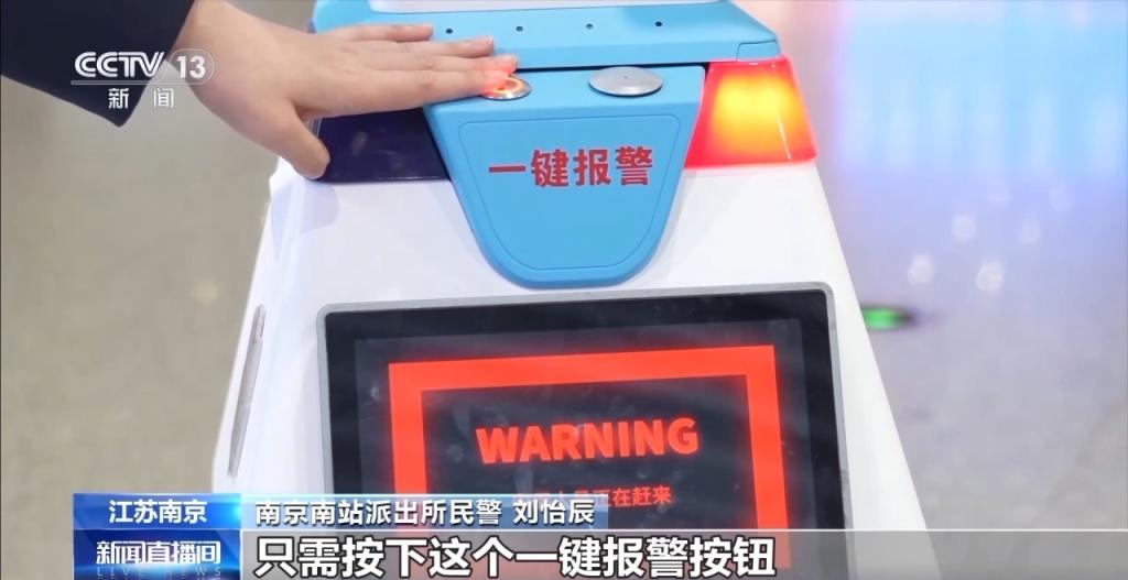 南京南站派出所民警 刘怡辰:春运的时候客流比较大,旅客报警求助也很多。旅客只需按下一键报警按钮,即可实现快速报警,它配备了比如高清摄像头、红外传感器,包括5G图传的一些功能,它可以实时把现场的图像和视频,传输到警务站的后台,工作人员可以看到具体的情况是什么样。