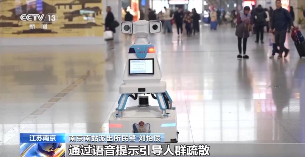 在江苏南京南站,为了更好地服务春运,警务机器人“小安”上岗亮相,在应急响应、导航引路、反诈宣传等领域发挥作用。